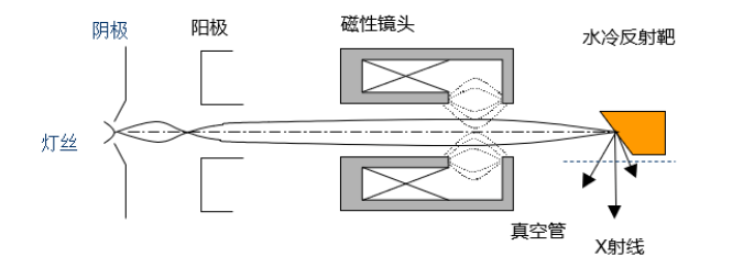 反射式靶的特点在于其靶面与入射电子束形成一定倾斜角度。这种设计具有较大的散热体积,因此可以承受较高电压的加速电子。反射式靶的优势在于能够获得更高的电子能量,从而产生更强的X射线辐射。这对于需要高能量成像的应用场景非常重要,例如: